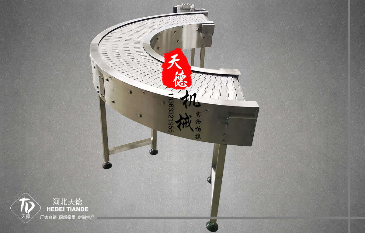 ◆不銹鋼304鏈板輸送機一般都可以直接用水沖洗或直接浸泡在水中,設備清潔方便,能滿足食品、飲料行業對衛生的要求。