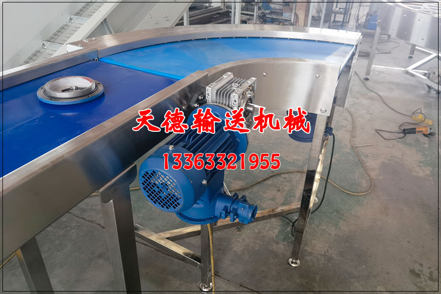 塑料食品罐輸送線轉彎皮帶輸送機
