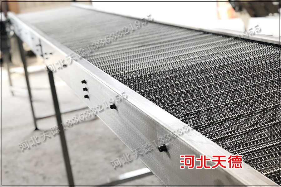 打撈水草使用的輸送機(jī)我們要采用不銹鋼304材質(zhì),網(wǎng)帶式爬坡不銹鋼輸送機(jī)我們要根據(jù)打撈的水草來定制具體的數(shù)據(jù),這里我們?yōu)闉榭蛻粼O(shè)計了一臺高度為半米,長度為五米,寬度為800毫米的輸送機(jī),共計三臺。河北天德絲網(wǎng)公司為大家設(shè)計爬坡網(wǎng)帶輸送機(jī),我們廠家保證能讓客戶購買到經(jīng)濟(jì)實惠的性價比高的不銹鋼輸送機(jī)。