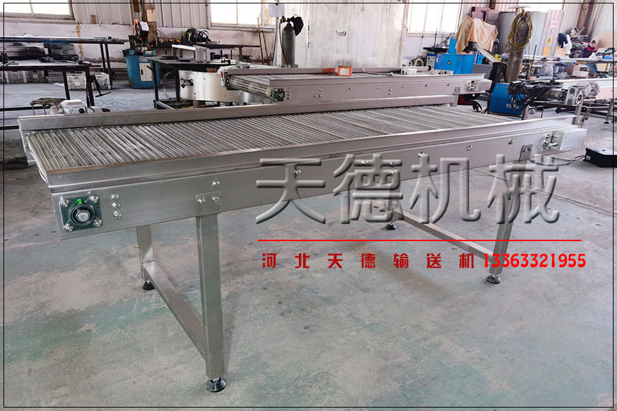 3、醫(yī)藥日化輸送線網(wǎng)帶輸送機的綜和采用:成本較高的網(wǎng)帶式輸送機,為著省掉用費,如一對僅是接口破綻的長網(wǎng)帶,長度有余量(編織一個領略需耗用約600 mm長短的網(wǎng)帶)用于重新編織接口,就得改為較短的、稍窄一部分的網(wǎng)帶,可用以務求較低的成網(wǎng)機。網(wǎng)帶輸送機在醫(yī)藥與日化也到手了較為廣泛。食物網(wǎng)帶輸送機實現(xiàn)商品多樣化上揚需求。