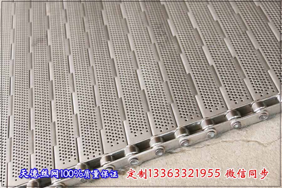 河北天德絲網制品有限公司給大家介紹一下鏈板金屬輸送帶常用的鏈條節距是38.1mm,那么為什么經常用這種38.1mm的鏈條節距呢? 大家都知道板式的輸送帶要比網帶式的成本貴,但是有些行業采用網帶式的輸送帶是不行的,用鏈板金屬輸送帶的話鏈條節距越小串桿用的也就多,成本也不會低,反之如果采用大一點的鏈條,串桿也用的少了,板也用少了,用38.1mm鏈條節距的輸送網帶正合適,只要是載重不是很重,幾十公斤左右的話用38.1mm的節距完全可以,但是也不能就是認為越大節距的成本會低,除非是載重很重的用大節距的鏈條,一般也不建議客戶用大節距的鏈條,只要重量不是很重,采用38.1mm鏈條節距輸送網帶不僅成本合理而且還可以承受產品的重量。