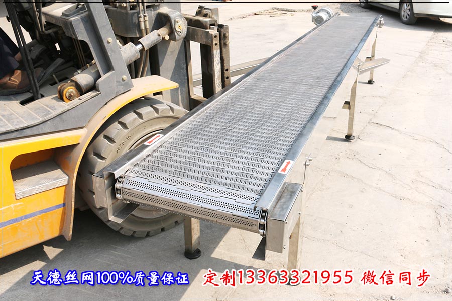 河北天德絲網制品有限公司生產鏈板輸送機、輸送鏈板、轉彎輸送機、轉彎鏈板輸送帶:13363321955 http://www.lishumiaopf.com/