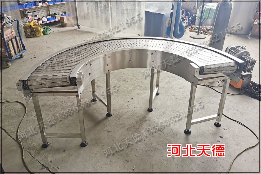 鐵板鏈條式轉彎機,鋼板輸送線轉彎輸送設備 現在的企業都是晝夜不停的生產,工人有白班和夜班2班倒,但是流水線機械設備卻沒有, 在這晝夜不停的流水線機械設備也會出點小毛病, 比如說有噪音 、皮帶跑偏等小問題, 當轉彎機輸送帶發出吱吱響聲時,說明金屬鏈板輸送帶表面摩擦系數明顯降低。 如果輸送設備輸送帶在負載時候發向,不妨觀察其中的轉彎輸送設備輸送帶, 發現輸送帶和輸送帶自動張緊裝置或鏈板輸送帶張緊輪上的阻力或者說彈力會異常地增加。