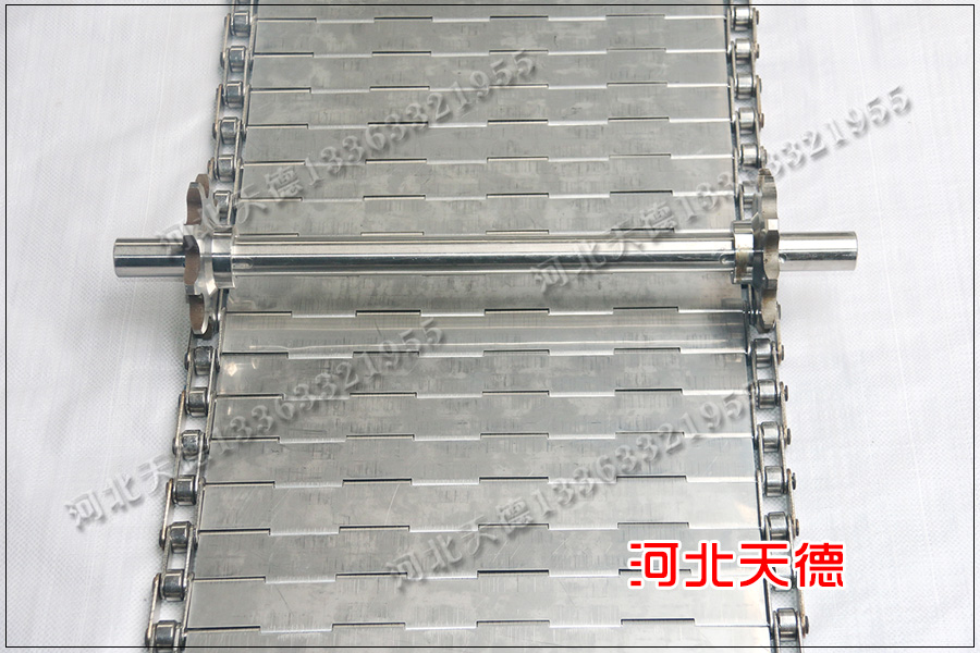 無孔金屬輸送鏈板用來輸送任何產品,可以做長距離輸送也可以做短距離輸送,特殊的情況需可以用來提升物料,或者做轉彎機使用。