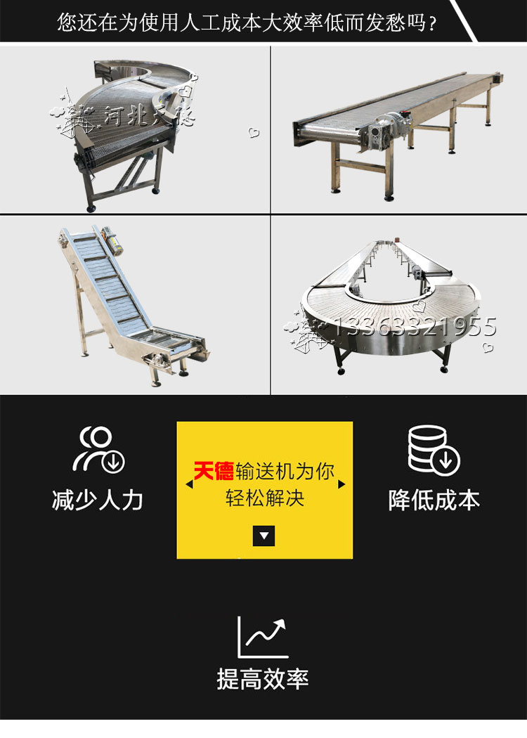 輸送機應(yīng)用行業(yè):食品、冶金、電力、煤炭、化工、建材、碼頭、糧食等。輸送機結(jié)構(gòu)形式: 水平直線輸送、提升爬坡輸送、轉(zhuǎn)彎輸送等多種形式,輸送帶上還可增設(shè)提升擋板、側(cè)擋板等附件,能滿足各種工藝要求。