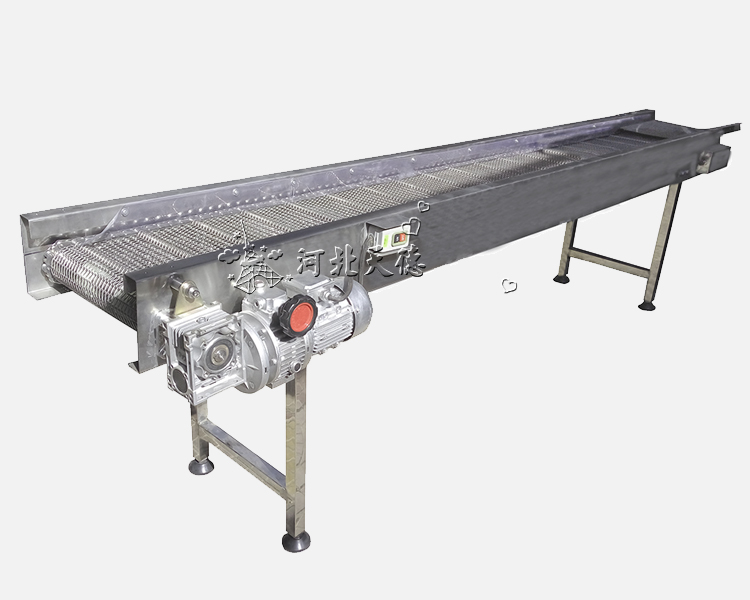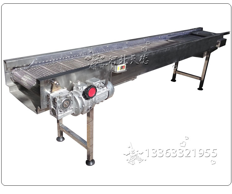 網帶輸送機主要用于物料的輸送,它采用不銹鋼制成的網帶作為載體運用輸送帶的連續或間歇運動來輸送各種輕重不同的物品,適用于各種食品行業的烘干、去濕、冷凍、清洗、熱處理,可輸送各種紙箱、包裝袋等單件重量不大的件貨,用途廣泛。 輸送帶的材質為不銹鋼,因而其強度高,伸縮性小,不易變形,易保養,而且衛生、耐腐蝕或惡劣環境性較強,使用壽命長。適用于食品、副食品、冷凍水產品的加工生產線、包裝輸送線和電子配件的加熱、烘烤的輸送。也可用于制藥、日用化工等行業。