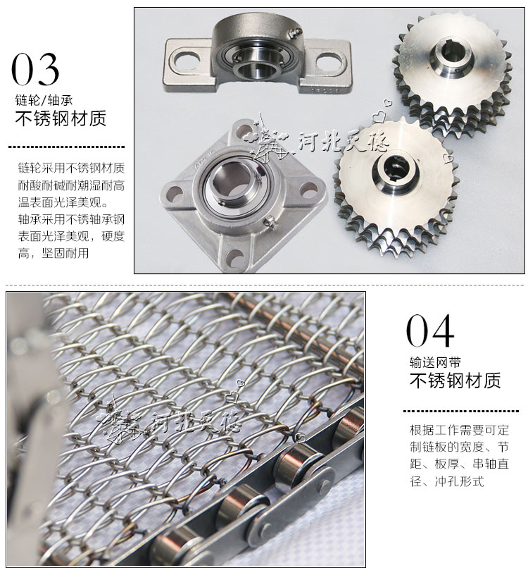 該輸送機(jī)用于物料的輸送。采用不銹鋼網(wǎng)帶作為載體,適用于各種食品行業(yè)的烘干、去濕、冷凍等、熱處理等;不銹鋼制成,具有耐高溫、便于清洗等特點(diǎn)。輸送機(jī)應(yīng)用行業(yè):食品、冶金、電力、煤炭、化工、建材、碼頭、糧食等。