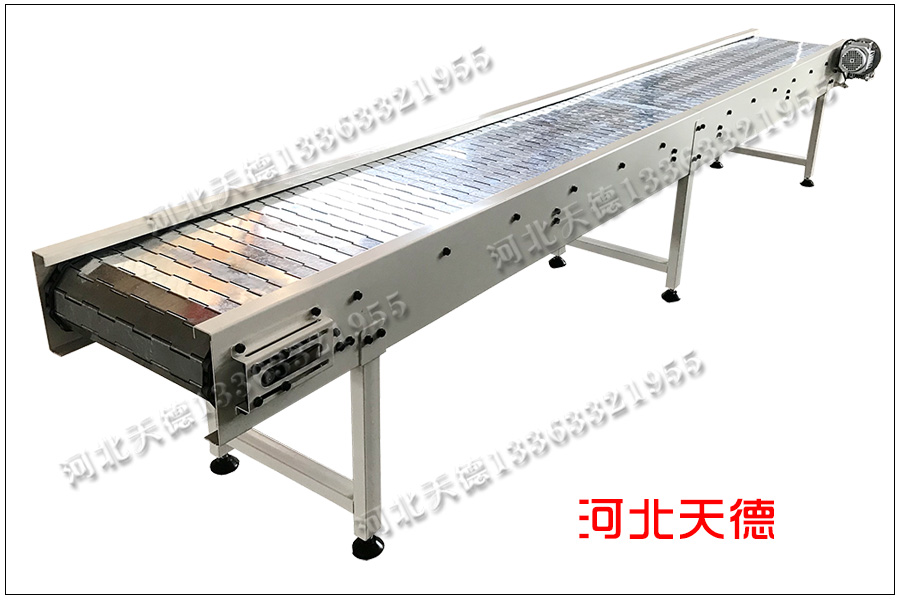 河南客戶訂購的鏈板輸送機,用來輸送塑料產品。